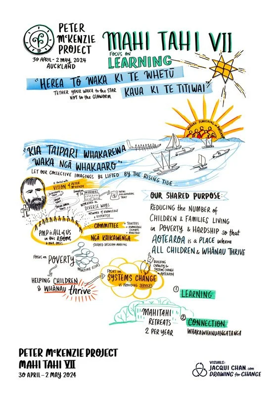 I’ve had the great joy of ongoing involvement in the Peter McKenzie Project, a philanthropic project focusing on systems change for whānau wellbeing (alleviating child poverty). Their participatory model of philanthropy is ground‑breaking in Aotearoa: a high‑trust model for working with and cultivating relationships amongst the Ngā Kaikōkiri organisations they fund.
